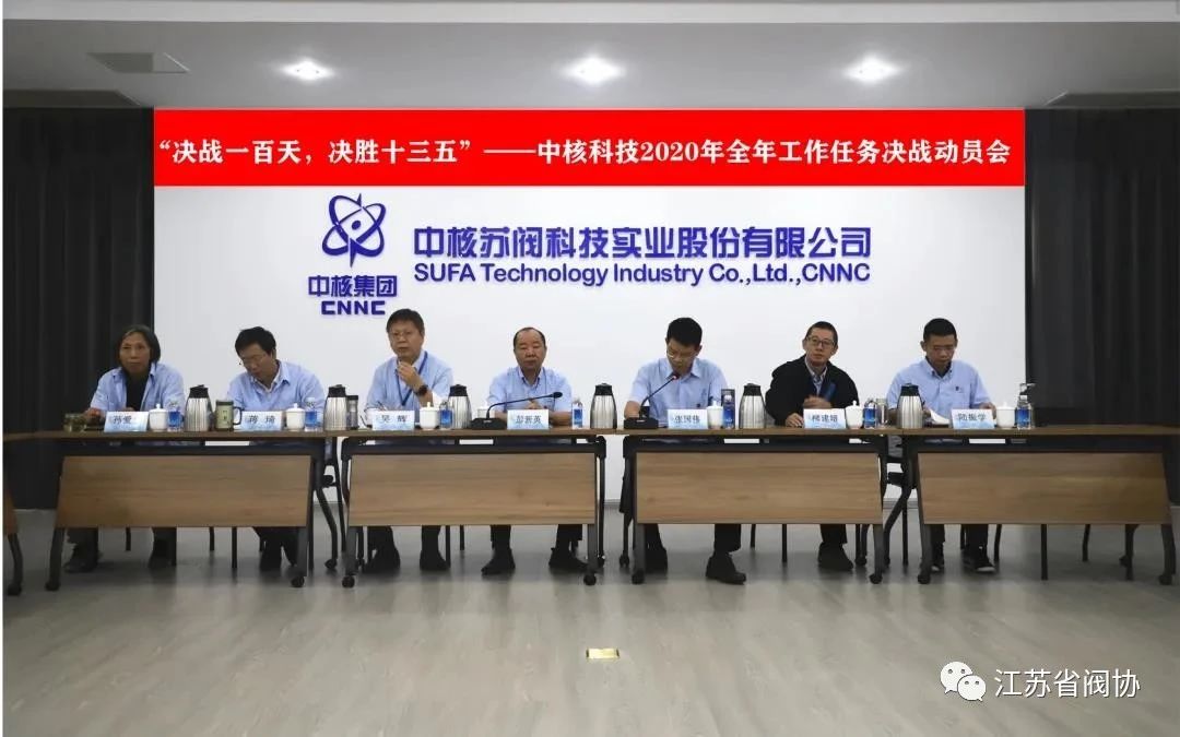 倡议发出后,中核苏阀科技实业股份有限公司党委迅速响应、积极行动。2020年10月12日,中核科技组织召开全年生产任务决战动员会。会议听取了公司整体和各利润中心1-9月经营指标完成情况,研究了完成全年目标任务的主要措施,并提出具体落实要求。会议强调,2020年是大考之年、大战之年,是我国全面建成小康社会的决胜之年,是“十三五”收官之年,也是“十四五”谋篇布局关键之年。公司上下要正确认识当前形,迎难而上,以必胜的信心“决战一百天,决胜十三五”。